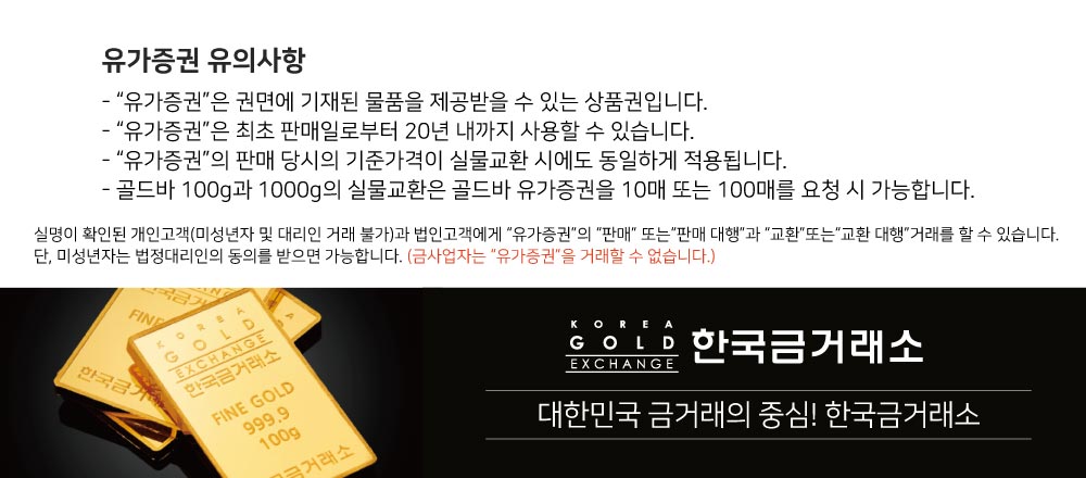 • 한국금거래소 유가증권 골드바 10g(실 판매가는 국제 금값과 환율에 의해 변동됩니다. 아래 고시가와 다를 수 있습니다.)